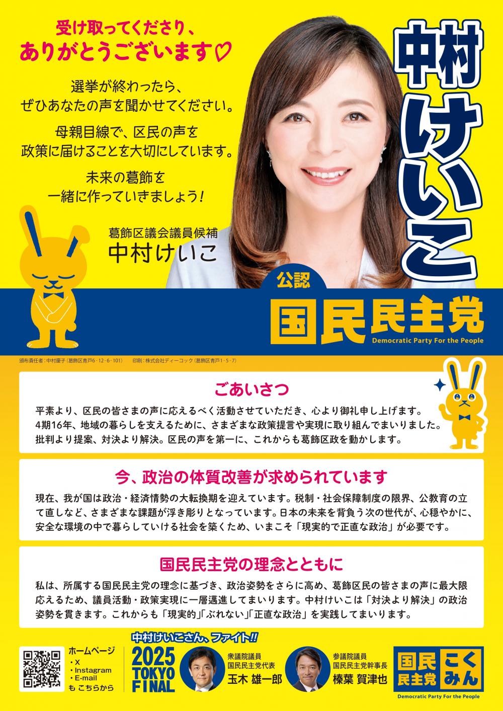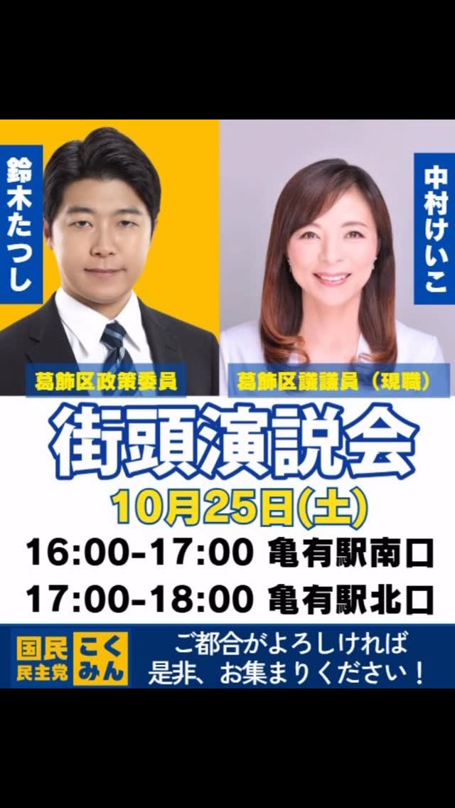 #国民民主党 #中村けいこ #鈴木たつし#葛飾区議会議員選挙2025