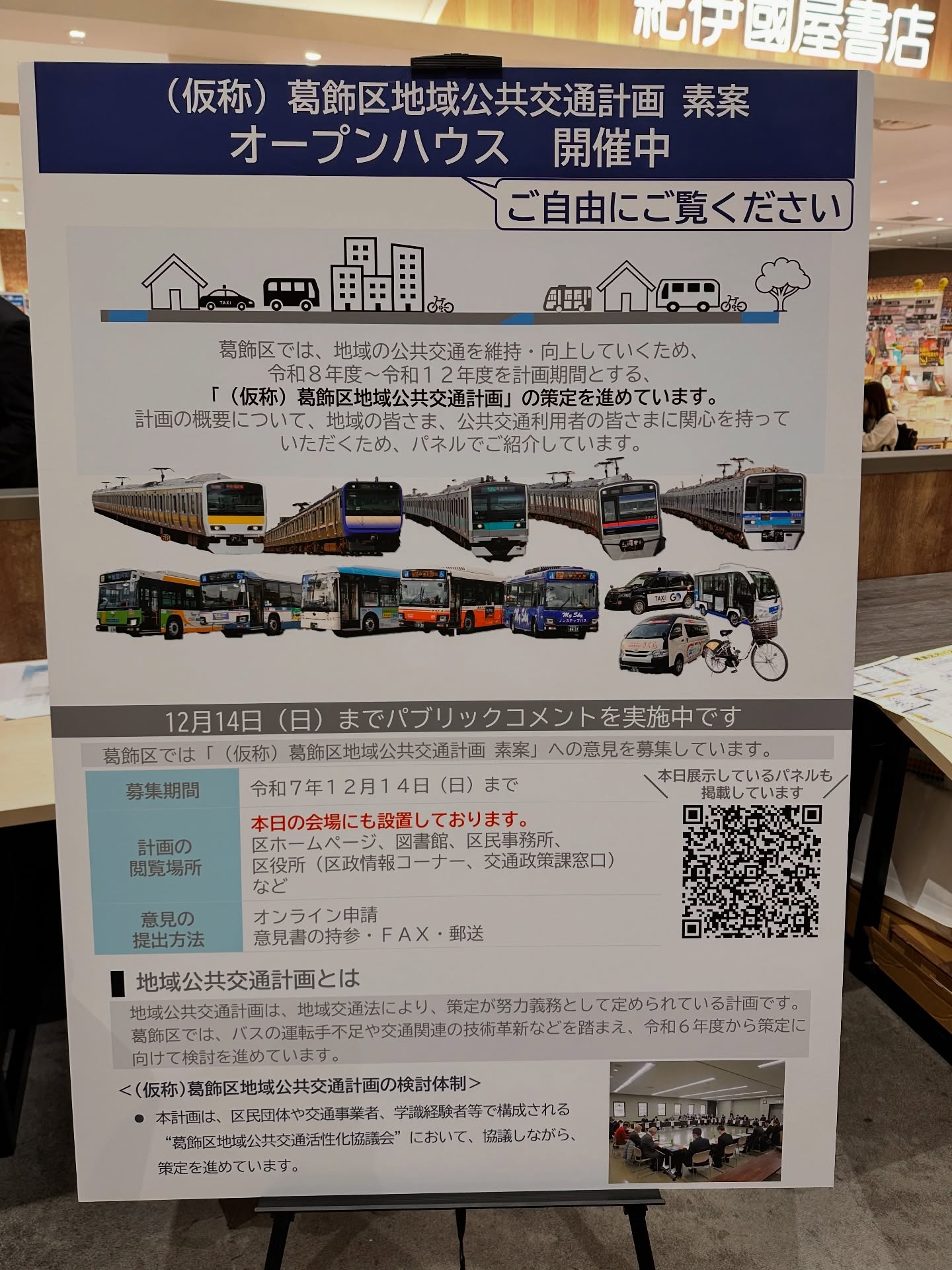 😖腰がーーっ💦 何十年ぶりだろう💦 ぎっくり腰のような痛みが続いているのですが、 久しぶりにアリオ亀有に行ってきました😅 ちょうど「葛飾区地域公共交通計画(素案)」のオープンハウスが開催されていて、 区の若手職員さんが休日にも関わらず笑顔で呼び込みを頑張っていて嬉しかったです💪✨ この計画では… 🚌 南北の移動をもっと便利に 🚲 駅前や自転車ネットワークの整備 🤖 MaaS(バス・電車・自転車など複数の交通手段をスマホで簡単に計画・決済できるサービス)の導入も検討 もちろん課題もあります⚠️ 💸 予算や技術面 ⌛ 大きな路線整備はすぐには実現しない 🏘 一部地域では改善が限定的 でも、区民の声が計画に反映されるチャンスです🗣💡 📌 パブリックコメント期間は 11月14日〜12月14日 小中学生向け資料もあり✨ 「ここを便利にしてほしい」「こんな交通サービスがあれば助かる」など、ぜひお気軽に意見を送ってみてはいかがでしょうか😊 #葛飾区 #葛飾区議会議員 #中村けいこ #デマンド交通 #MaaS