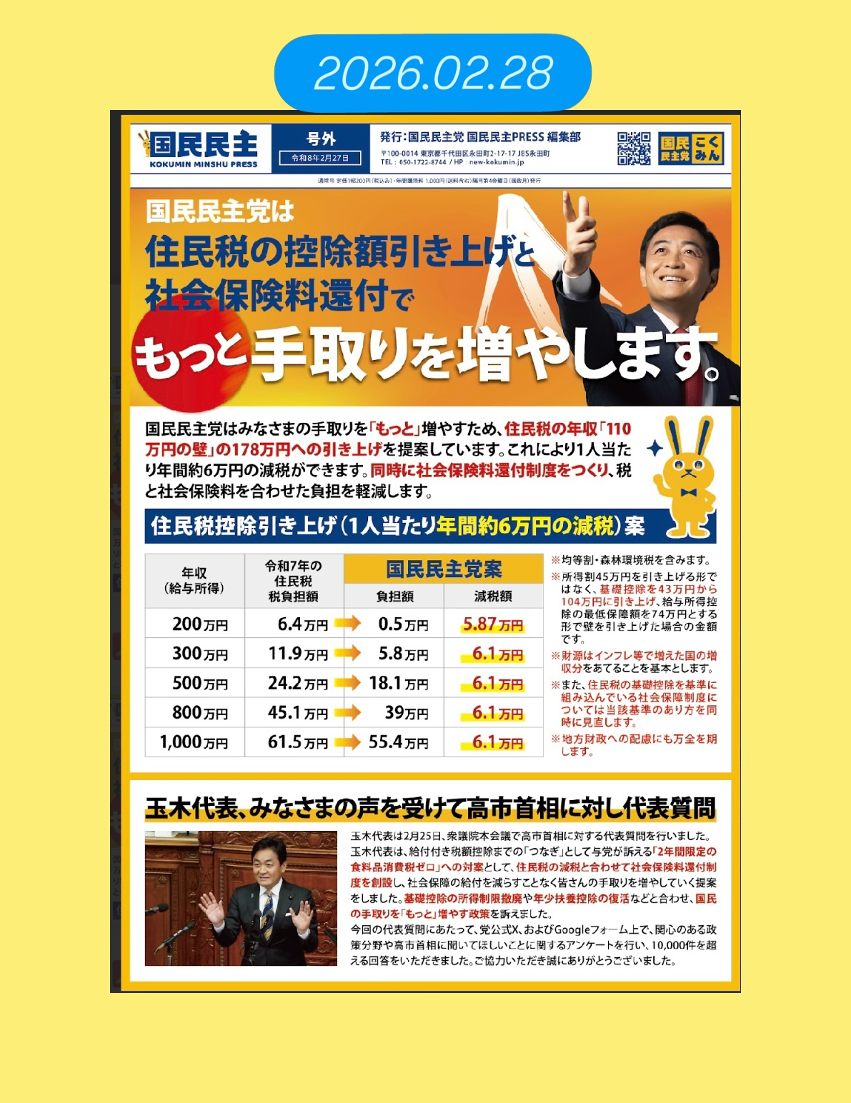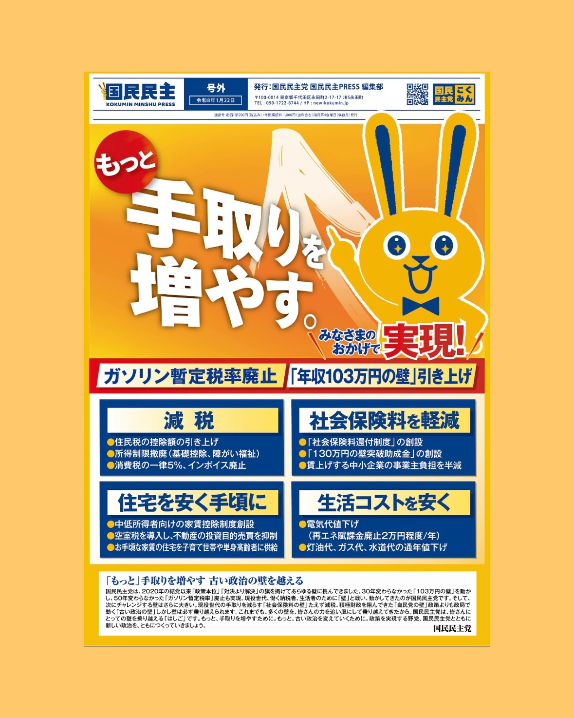🗓️2026年1月23日 【国民民主PRESS号外(政策ビラ)発行のお知らせ】 #国民民主党 #葛飾区議会議員中村けいこ #もっと手取りを増やす