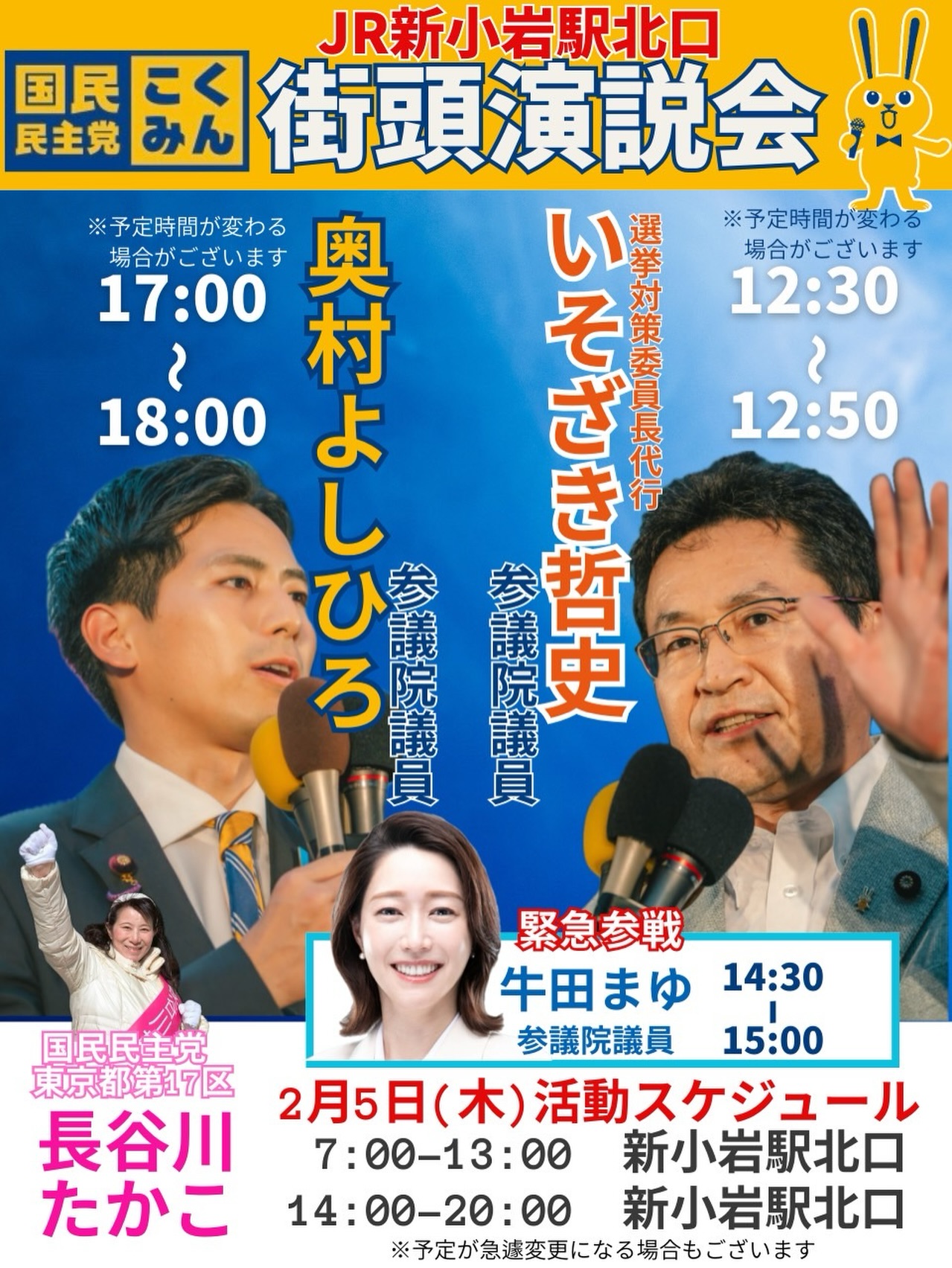 🥶寒ーい🥶 本日、玉木雄一郎代表は、都内(渋谷→新宿→北千住)にて街頭演説会を開催しました🎤 葛飾区のお隣、足立区の、森ようすけ衆議院議員のお膝元「北千住」駅西口デッキ上にて。 政局・選挙最優先の古い政治から、国民生活最優先・経済最優先の新しい政治に変えていこう! 政治は、看板を替えることでも、言葉を飾ることでもなく、現実から逃げずに、国民を騙さず向き合い続けることだと思う! だから私は、これからも愚直に国民民主党です。 #国民民主党 #玉木雄一郎 #森ようすけ衆議院議員 #葛飾区議会議員中村けいこ