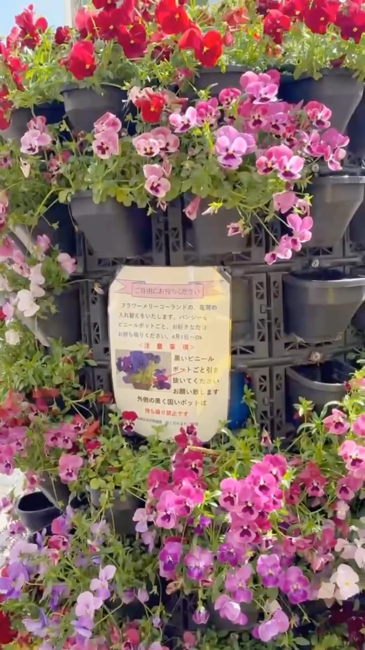 🌼ちょっと嬉しい発見🌼 亀有駅南口で街頭活動をしていると、フラワーメリーゴーランドの前でごそごそと作業している女性たちが。 何をしているのかな?と思って見てみると、花苗を持ち帰っている様子でした😳 掲示を見ると、こんな案内が! 「自由にお持ちください。 フラワーメリーゴーランドの花苗を入れ替えます。 パンジーをビニールポットごと、お好きなだけお持ち帰りください。 4月1日~OK」 季節の花の植え替えにあわせて、 これまで咲いていたパンジーを地域の方に持ち帰ってもらうとのこと。 とても良い取り組みだと思いました🌸😃🌸早いもの順😆見つけた方はぜひ😊 ※持ち帰る用の袋をお忘れなく。 ちなみにこの🌼フラワーメリーゴーランド🌼は、葛飾区の「花いっぱいのまちづくり」から生まれた葛飾区オリジナルの立体花壇💐 太陽光発電で自動散水ができ、水道工事が不要。狭い場所でも設置できる仕組みで、産学官民の連携で開発されたものです💡 来月からは全国みどりと花のフェアかつしかも始まります。 花と緑でまちが彩られていくのが楽しみです🌼 🌼🌷🪻🌸🌺💐🌻🪷🌹 #葛飾区 #亀有 #全国みどりと花のフェアかつしか #フラワーメリーゴーランド #花いっぱいのまちづくり